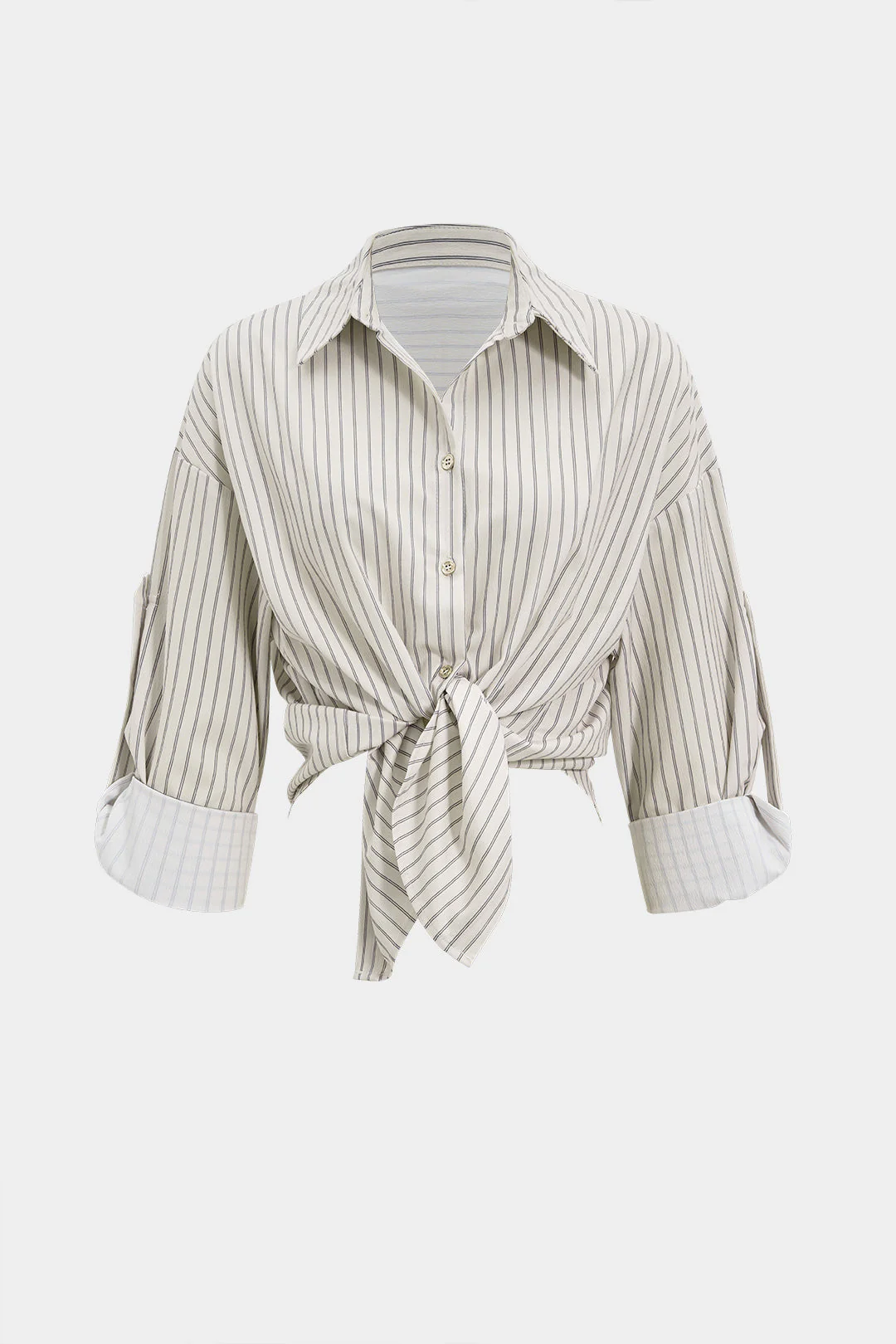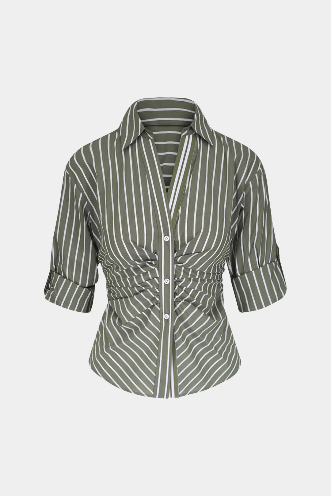 Stripes Print Button Ruched Short-Sleeve Shirt
